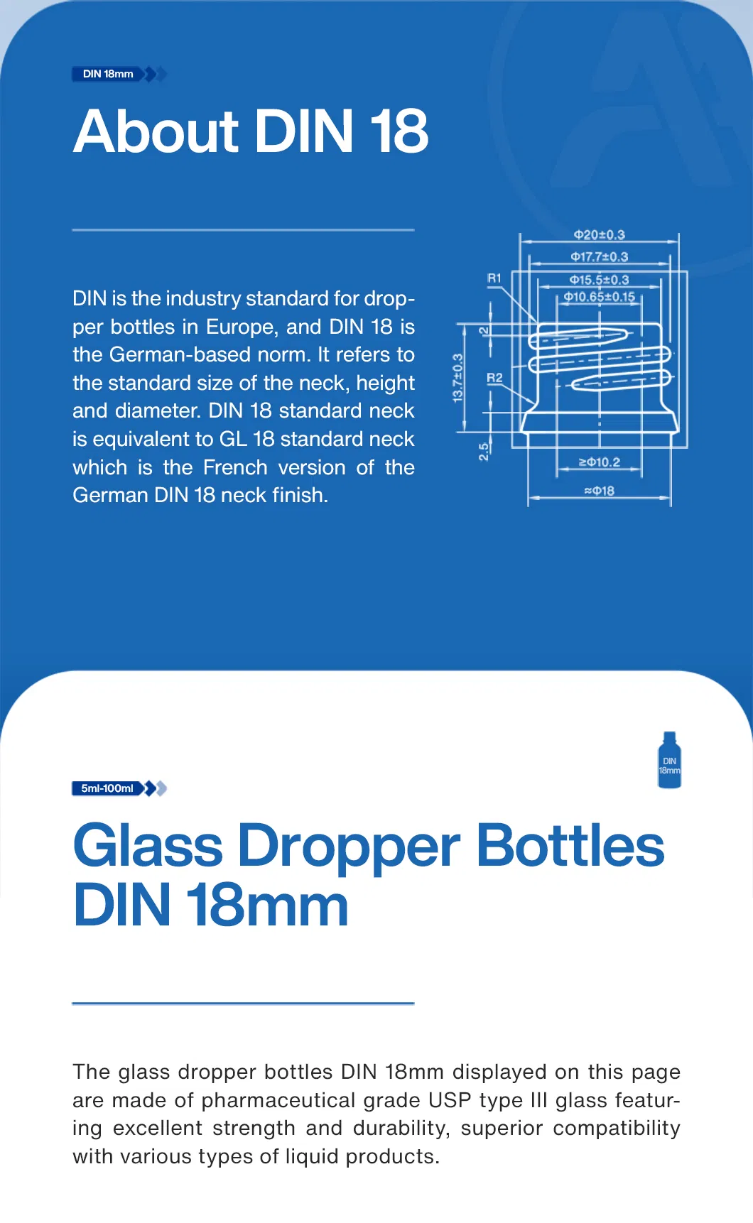 | Product Category: | Glass Dropper Bottles DIN 18 |